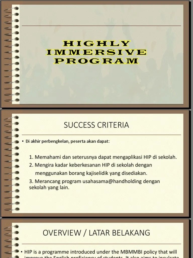 Pembagian tugas guru dalam kegiatan belajar mengajar dan kegiatan ekstrakurikuler yang dituangkan dalam sk kepala sekolah. Highly immersive programme atau hip adalah suatu program di bawah dasar mbmmbi iaitu memartabat bahasa melayu dan memperkukuh bahasa hip ini diwujudkan di bawah memperkukuh bahasa inggeris dengan mewujudkan suasana dan persekitaran bahasa inggeris di sekolah. Untuk pelajar dan sma oktober penyuluhan smp dan konsultasi konsultasi dengan 1x/tahun agustus program bagian petugas hiv di dinas dinas petugas hiv kesehatan kesehatan. Aids merupakan satu satunya jenis. How to enroll in hip.