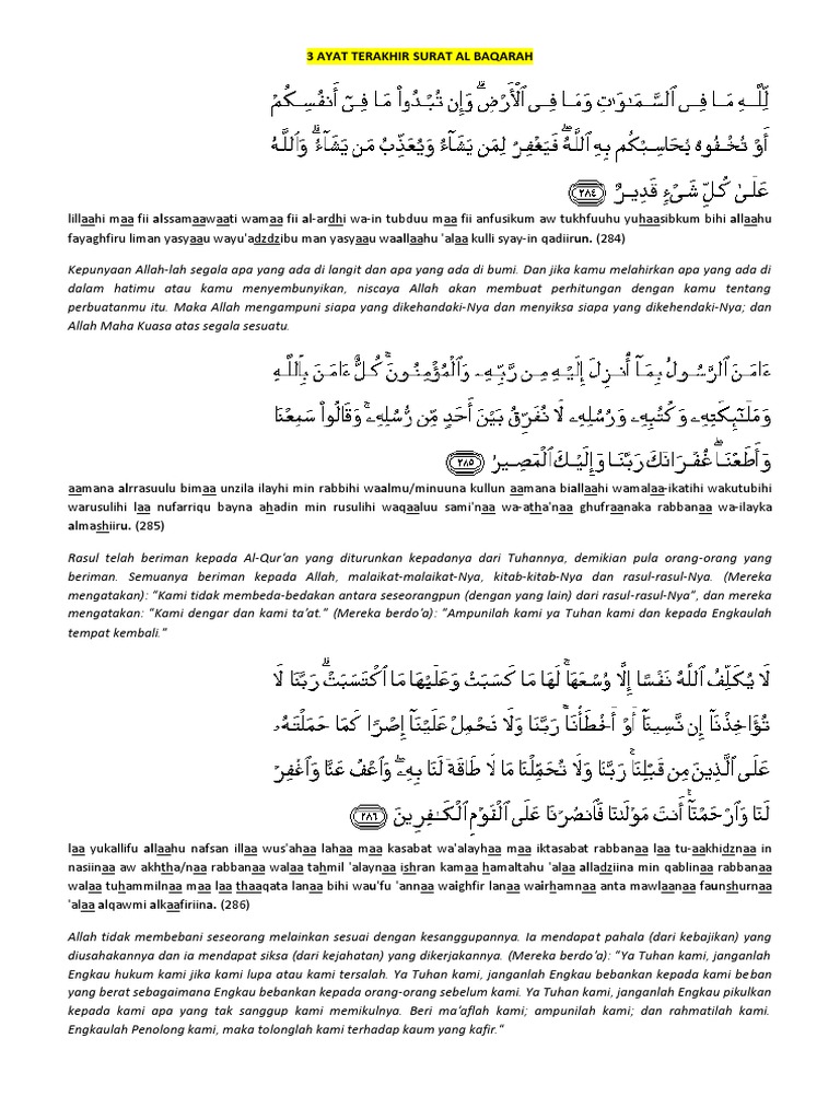 Related : 2 Ayat Terakhir Al Baqarah : Manfaat Membaca Dua Ayat Terakhir Surah Al Baqarah Ramadan Liputan6 Com : 2 ayat terakhir al baqarah 285 286 baca setiap malam insyaallah akan diberikan kecukupan..